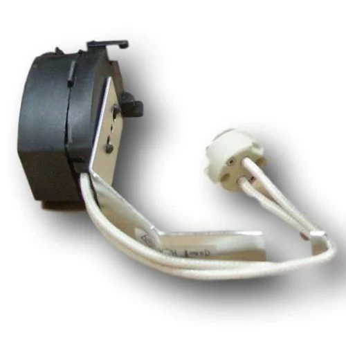 Ceramic lamp holder for use with 50mm 12v Dichroic lamps 50W max pre-wired with 150mm low voltage flex and spring retaining clip