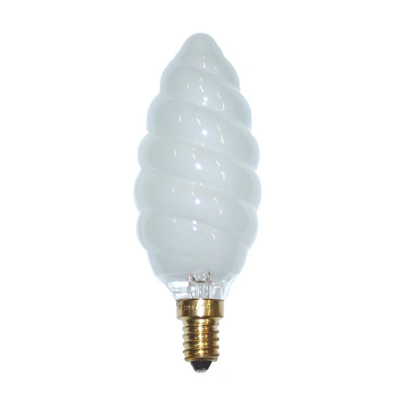 A decorative large candle light bulb with matt pearl twisted glass finish.