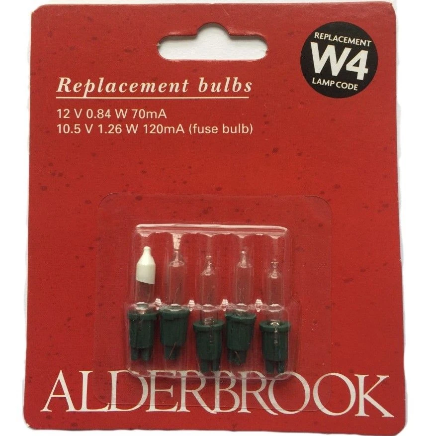 Pack of 4 spare replacement clear fairy lamps. Consumer code W4. Spare fuse bulb also included.
