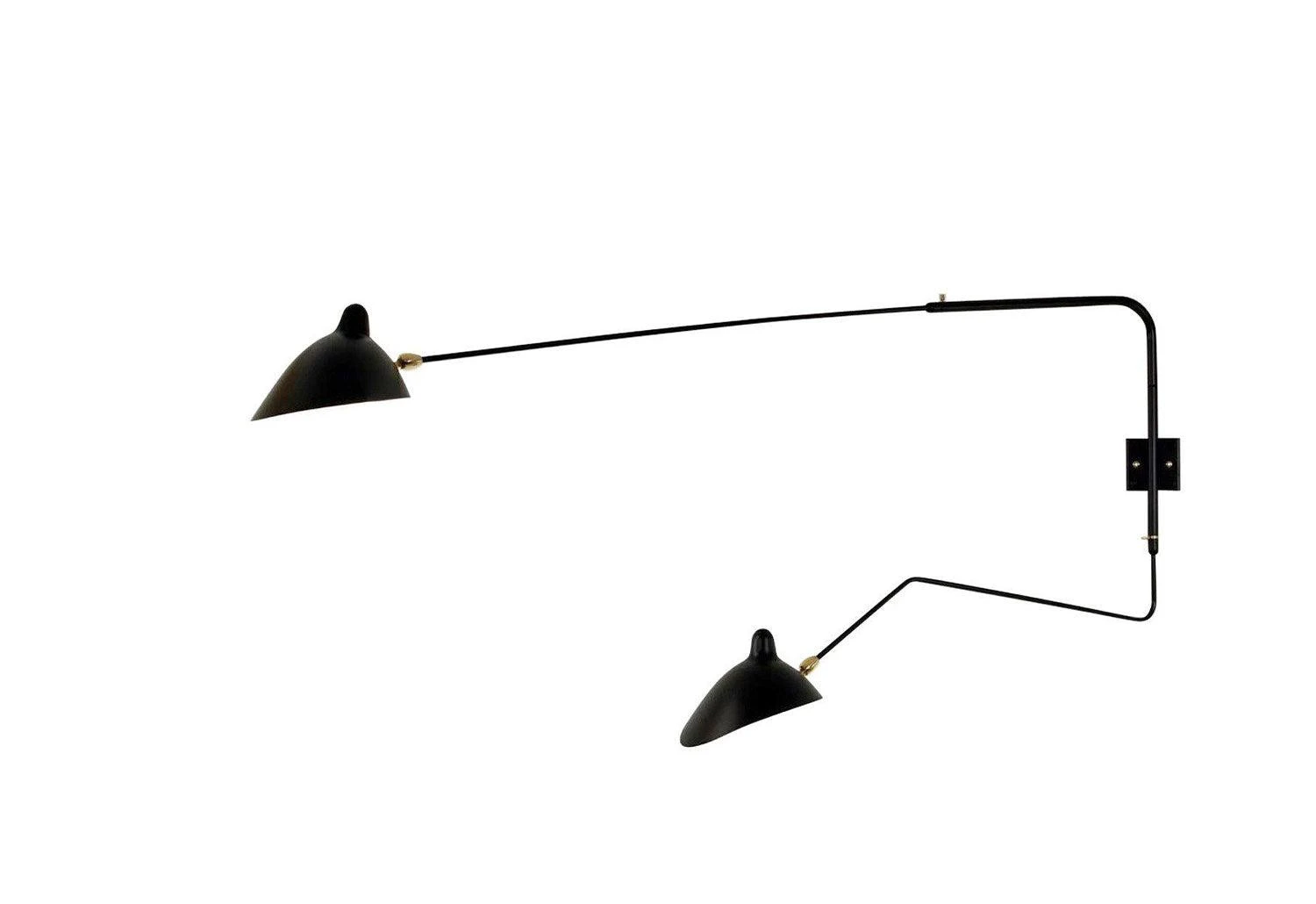 Rotating wall lamp, 2 rotating arms by Serge Mouille for Serge Mouille Editions.