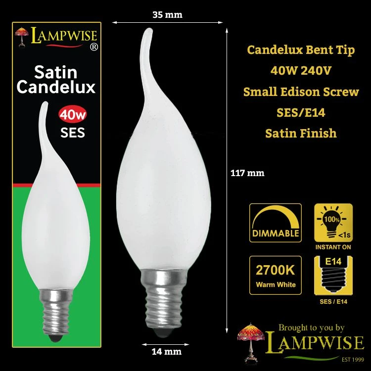 40 Watt satin finished SES E14 Small Edison screw Candelux candle bulb
