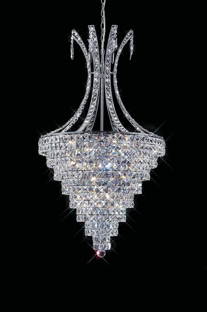 The Kanya is a 10 light pendant light by Diyas with Polished Chrome finish and crystal glass shades.It requires 10x 60W max E14 light bulbs which can be Golf Ball.