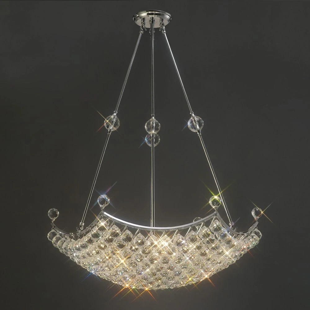 The Cesto is a 12 Light Pendant lamp by Diyas with Polished Chrome and crystal shades.It requires 12x 33W max G9 light bulbs which can be halogen or LED.