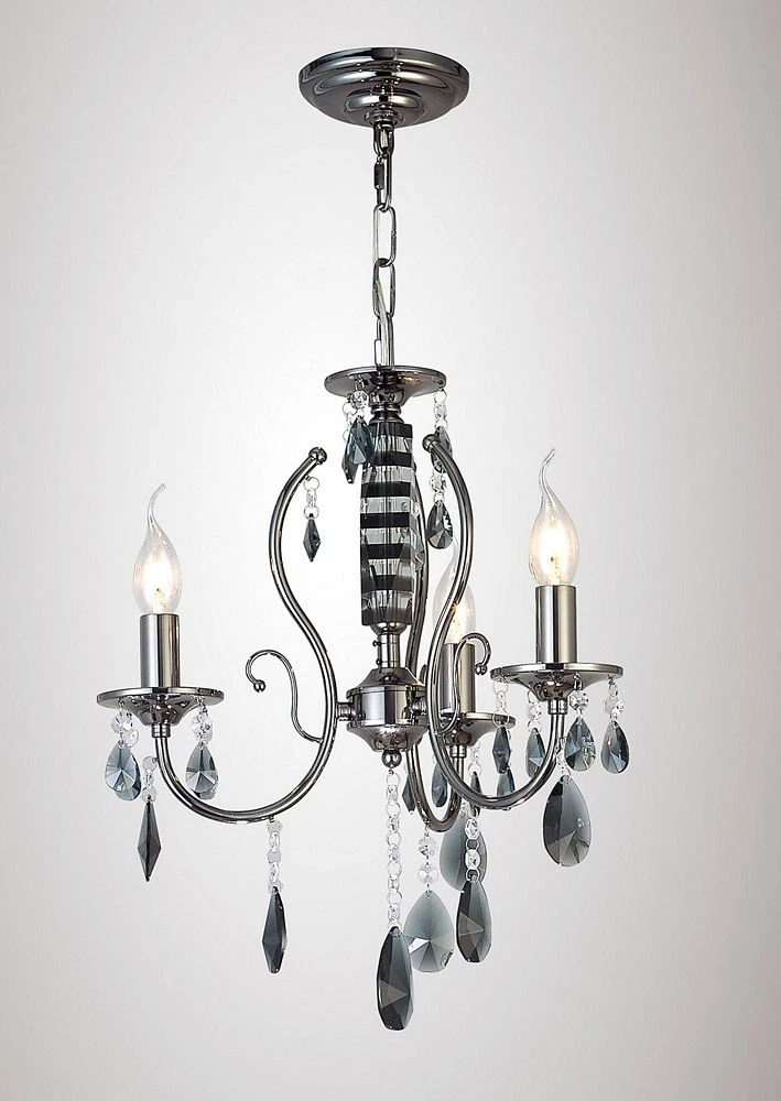 Exclusive range of Black Chrome. Enclose of Asfour smoked crystal and clear crystal pendalogues augment the tubular structure constructing the splendid coordination. The smoked crystal constructs character whilst retaining its glamour. Alternative clip on crystal shades can be used to construct another pattern approach.