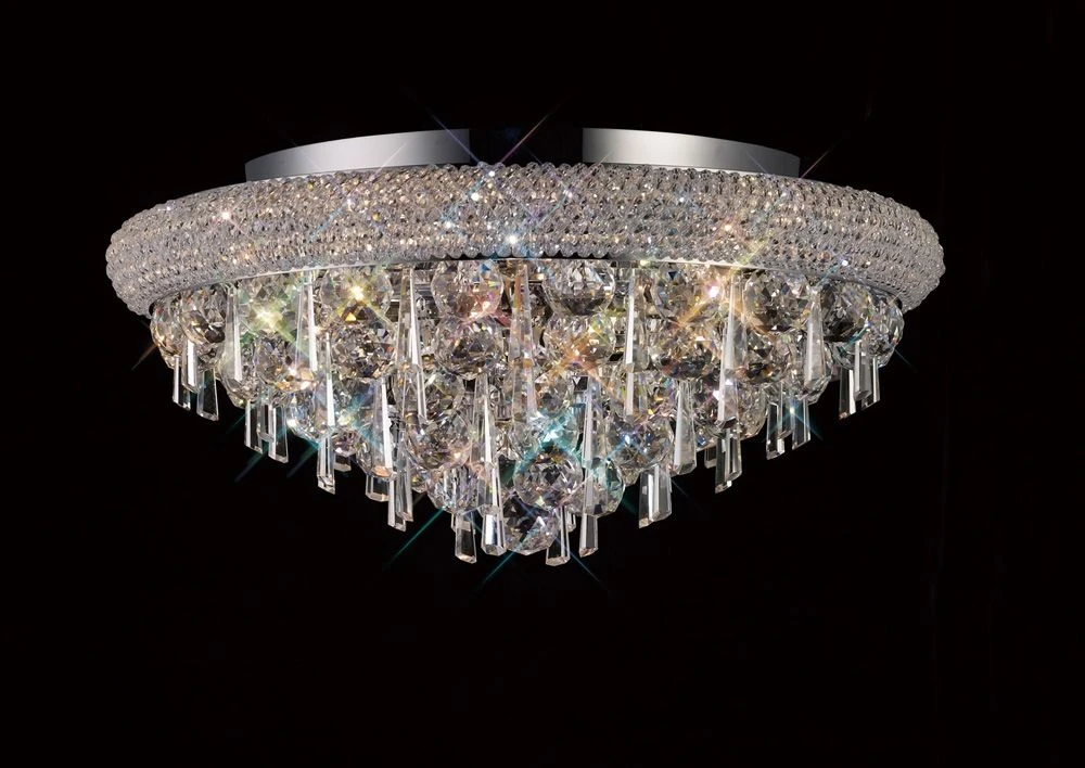 The Alexandra is a 7 light ceiling light by Diyas with a polished chrome finish and crystal shades. It requires 7 x 60W max E14 light bulbs which is Candle.