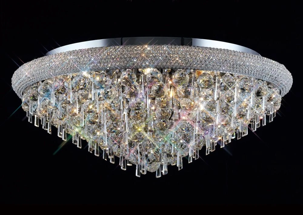 An enormously, amazing, awe inspiring variety occupied with a plenty of Asfour crystal obtainable in a Polished Chrome and French Gold finish.Each fitting uses a grouping of 40mm clear spheres and 62mm hexagonal droplets. Descendent levels increasing in size flow composed with tumbling parts of crystal beads on the pendants.Every element also structures a considerable curved ring of strictly packed Asfour crystal beads.The 37 light 1.1m diameter 3 level masterpiece is by far the flagship model.This variety releases magnificence and regality throughout.