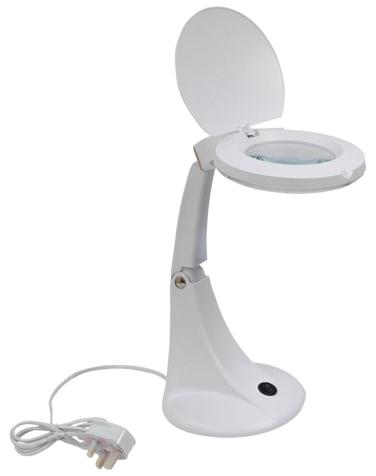 This carefully designed illuminated magnifier has been constructed to maximise desktop space while still offering outstanding performance. The product uses a 4″ dual function lens that provides magnifications of 1.75 (3 Dioptre) and 3 (8 Dioptre) this makes it ideal for fine detail projects. Constructed from robust materials the unit features LED illumination, 300 degree pivoting head, twin arm for easy positioning, flip up lens cover, heavy base and on/off switch. The product has a multitude of applications and can be used in offices, homes, laboratories and schools.