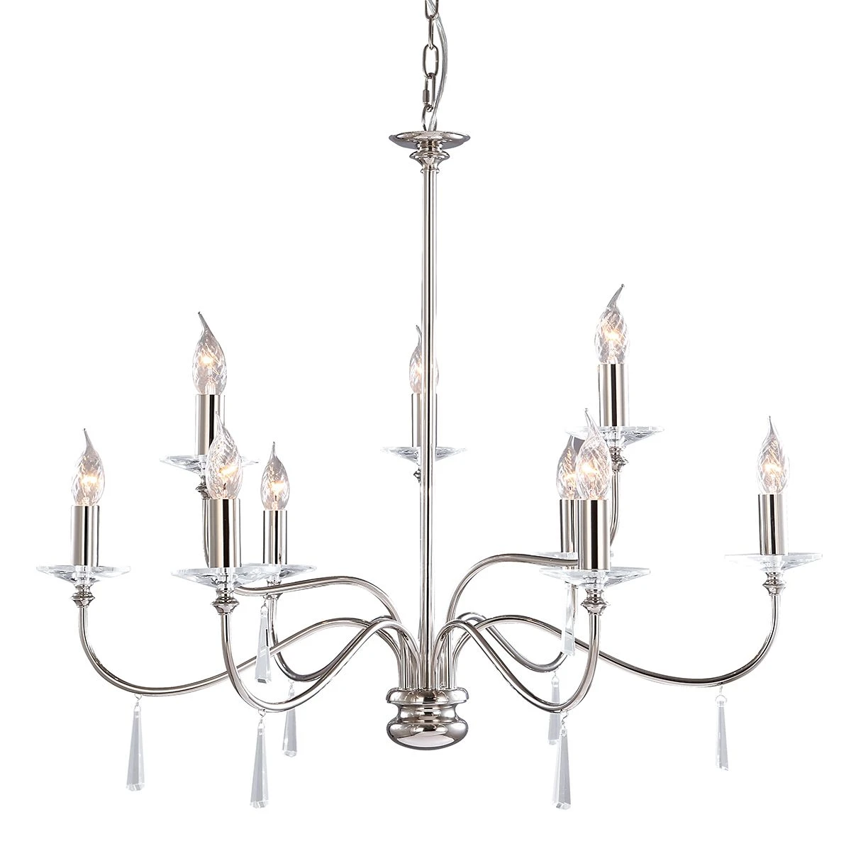 FP9 POL NICKEL Nine light chandelier – Part of the Finsbury Park Range by Elstead Lighting.
