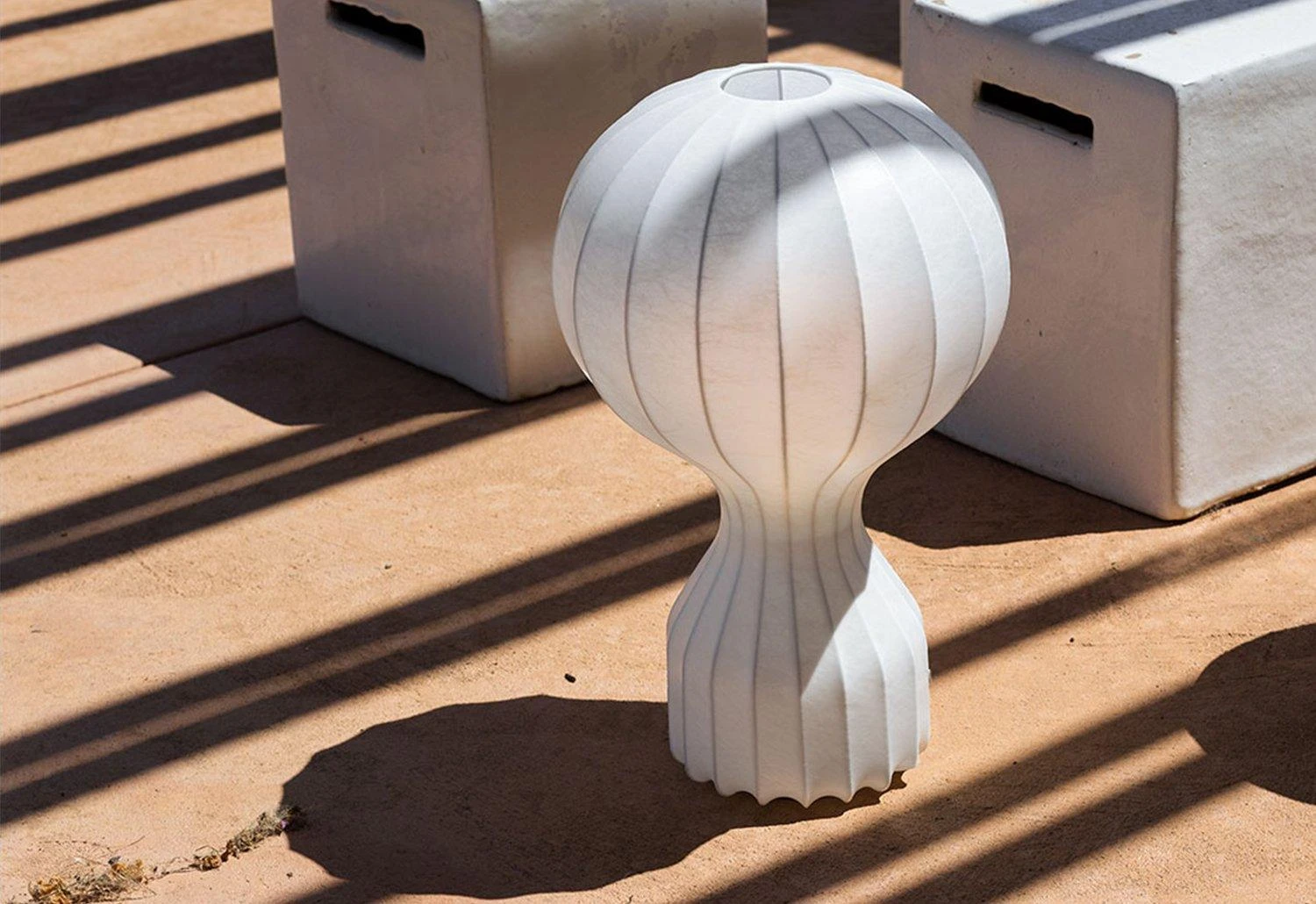 Table lamp designed by Achille and Pier Giacomo Castiglioni in 1960 and re-issued by Flos for their 2005/06 Cocoon range.