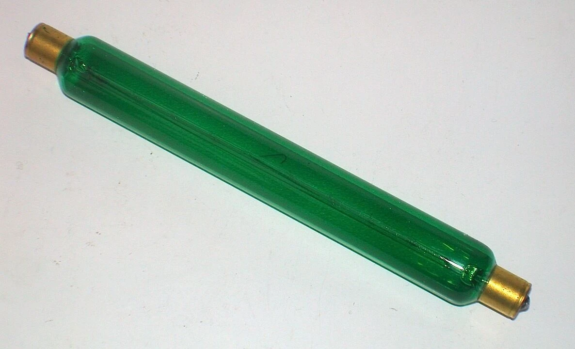 Green coloured strip lite typically used in electric fireplaces in 60W 240V 284mm double-ended tubular shape cap type S15. Average lifespan 1,000 hours.
