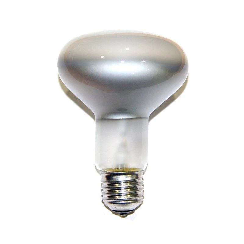 Leuci branded 40-watt incandescent 80mm (R80) frosted reflector spotlight.