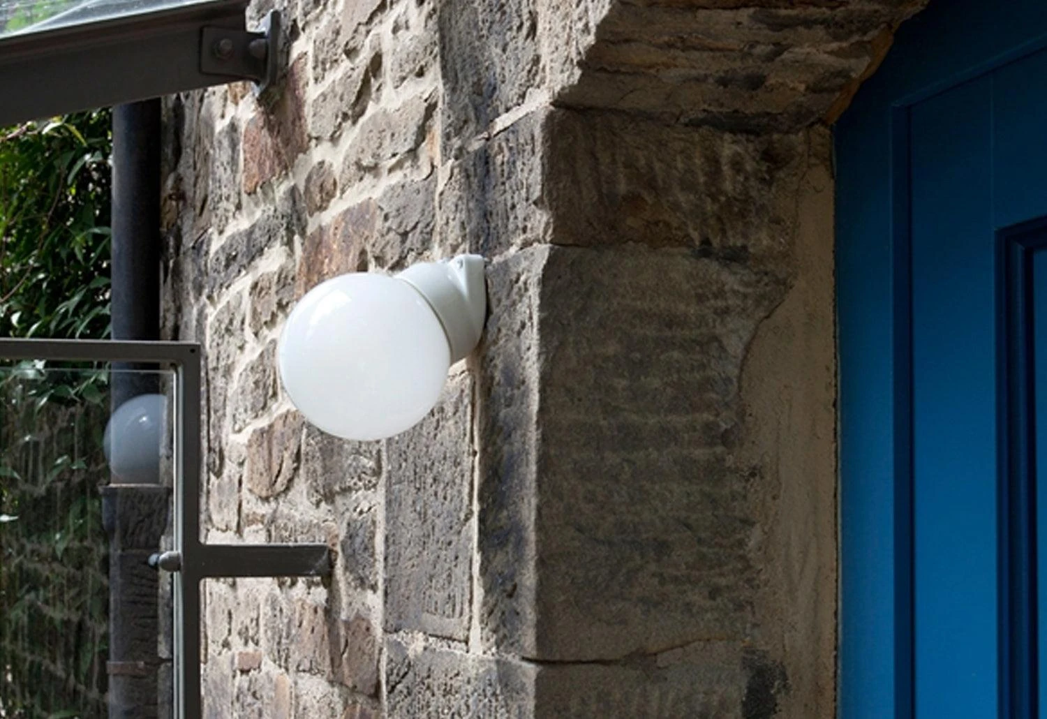 The white porcelain wall light has a timeless neutral design. It creates a naturally diffused light through a frosted globe bulb. Perfect to illuminate bathrooms or outdoor spaces.