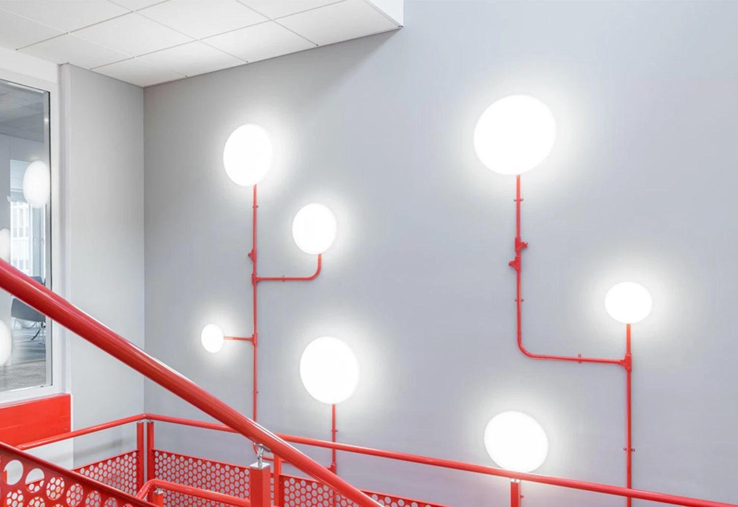 AJ Eklipta was originally designed by Arne Jacobsen in 1959 for Rødovre Town Hallin, where they were used to illuminate stairways. A smaller 22cm diameter was later designed for St. Catherine’s College in England.