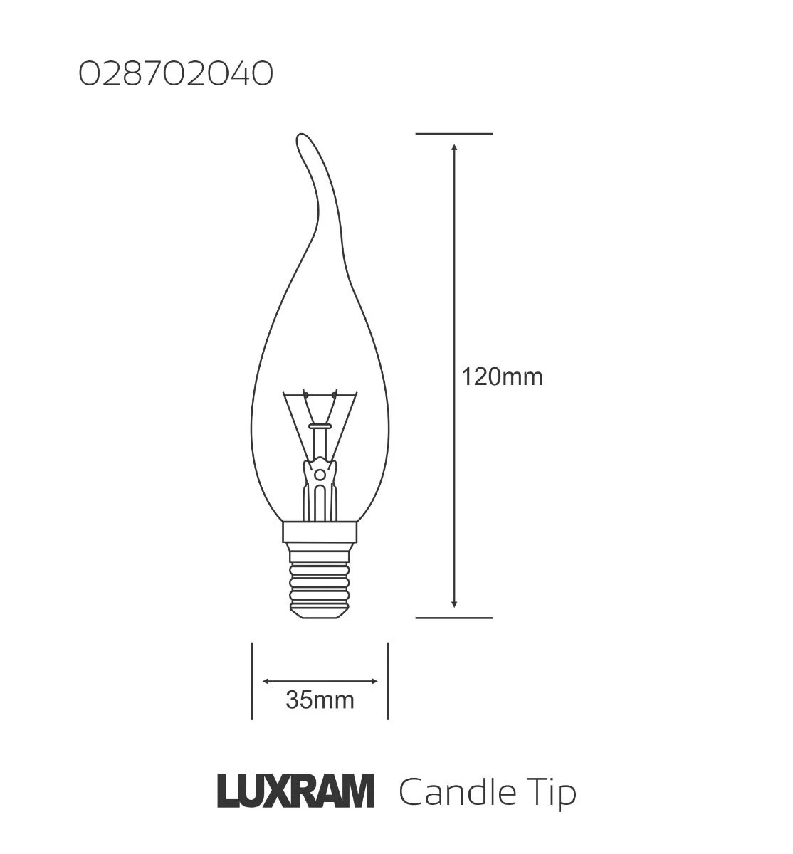 Luxram 40W Clear SES E14 Small Edison Screw Bent Tip Candelux