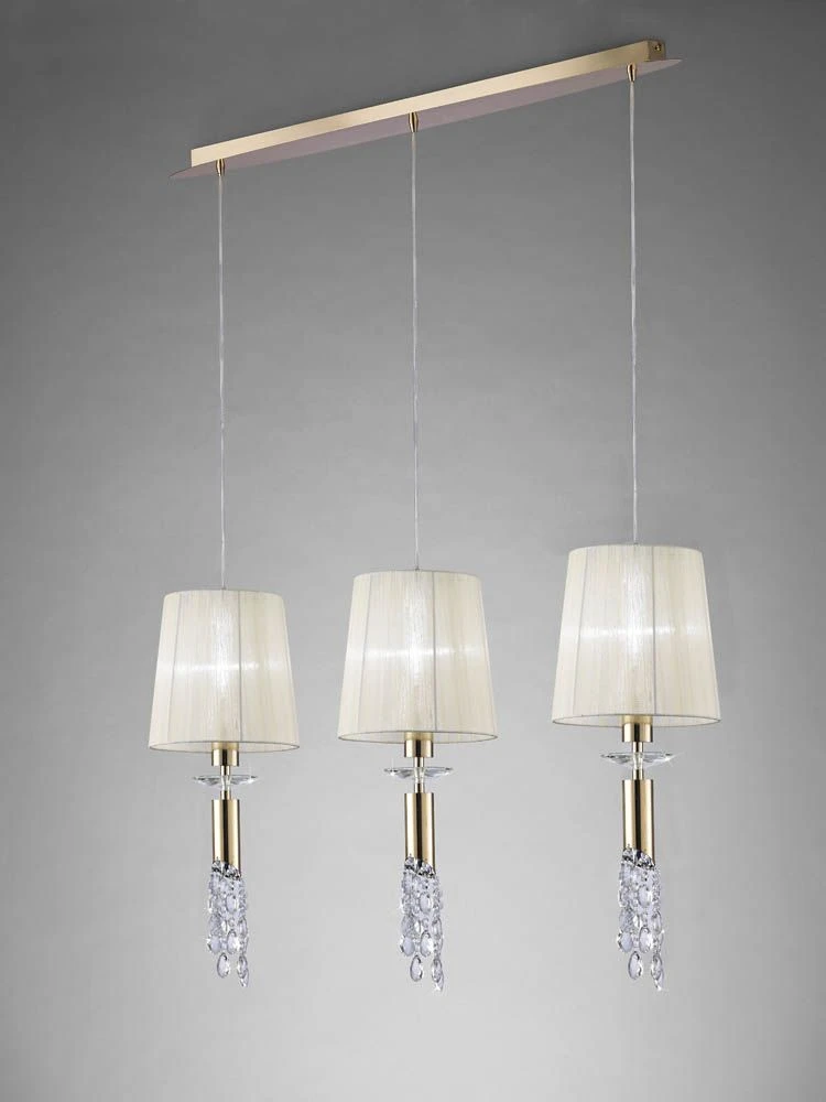 Mantra M3855FG Tiffany Pendant 3+3 Light E27 Line, French Gold With Cream Shades & Clear Crystal