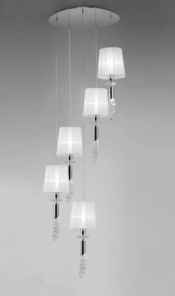 Mantra M3857 Tiffany Pendant 5+5 Light E27 Spiral, Polished Chrome With White Shades & Clear Crystal