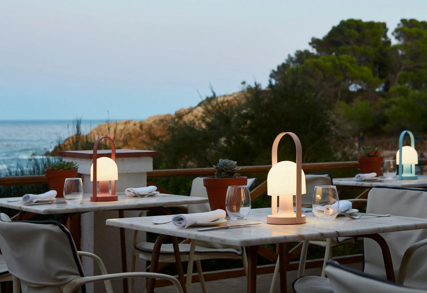 Portable and rechargeable, FollowMe is a table lamp that can be taken wherever you go. Because of its small, warm, and self-contained character, it is ideal both indoors and outdoors. It also works in restaurants and terraces that have no access to electrical outlets or to replace candlelight.