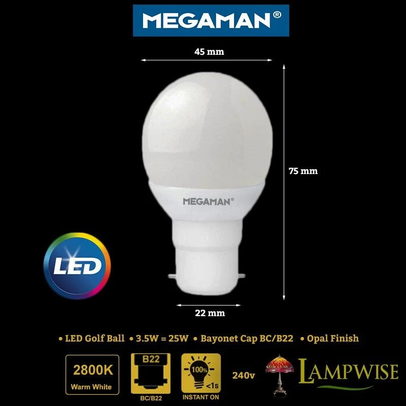 Great LED Opal Golf Ball bulb with a Bayonet Cap fitting and 15,000 hour lifespan.