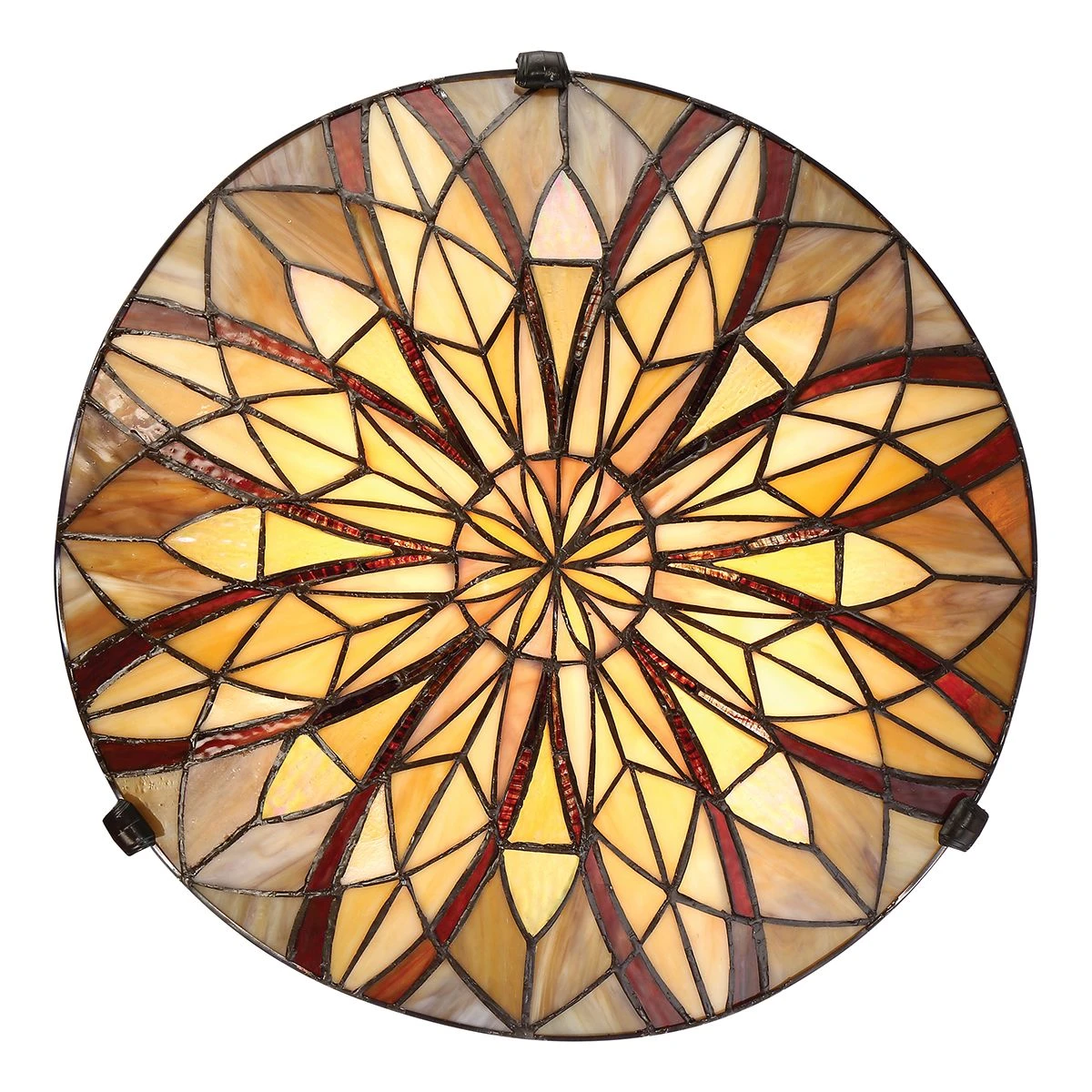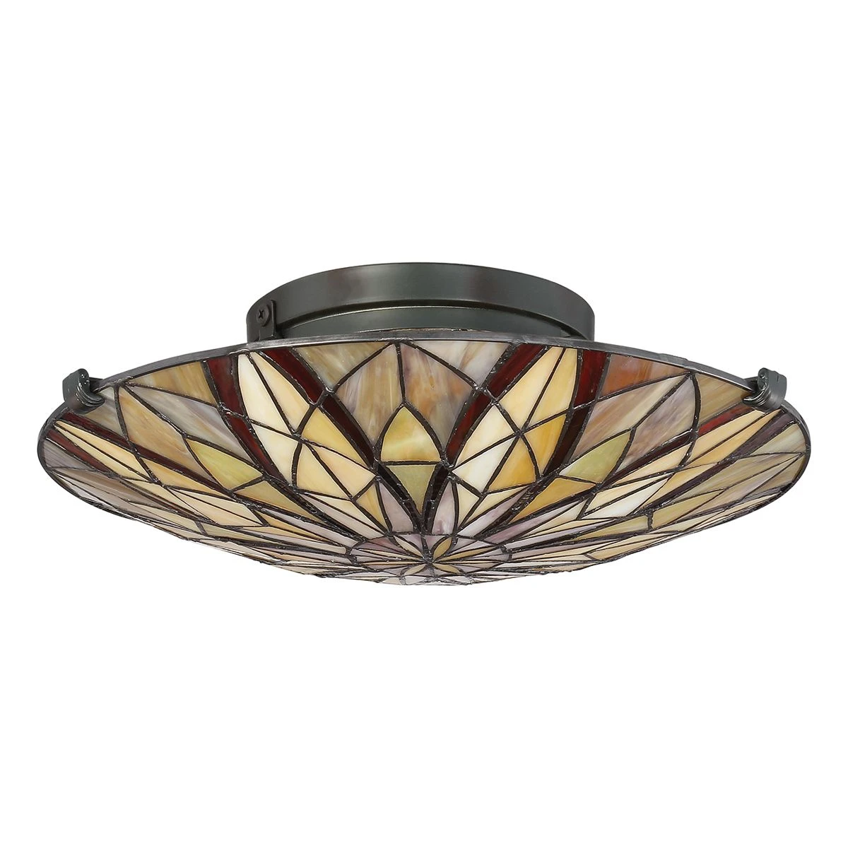 The Victory collection illuminates your home with varying shades of yellow and red Tiffany glass arranged in criss-crossing long swoops. Finished in Valiant Bronze for a sophisticated look.