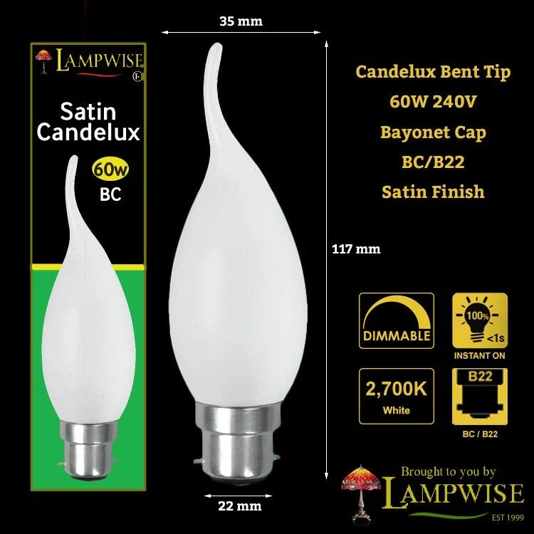Stylish & decorative candle lamp with elegant flame shape and flicked tip. Ideal for use in chandeliers and multi-lamp decorative fittings.