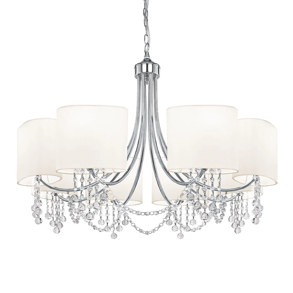 Chrome/crystal fabric shade, 8 light pendant, E14,