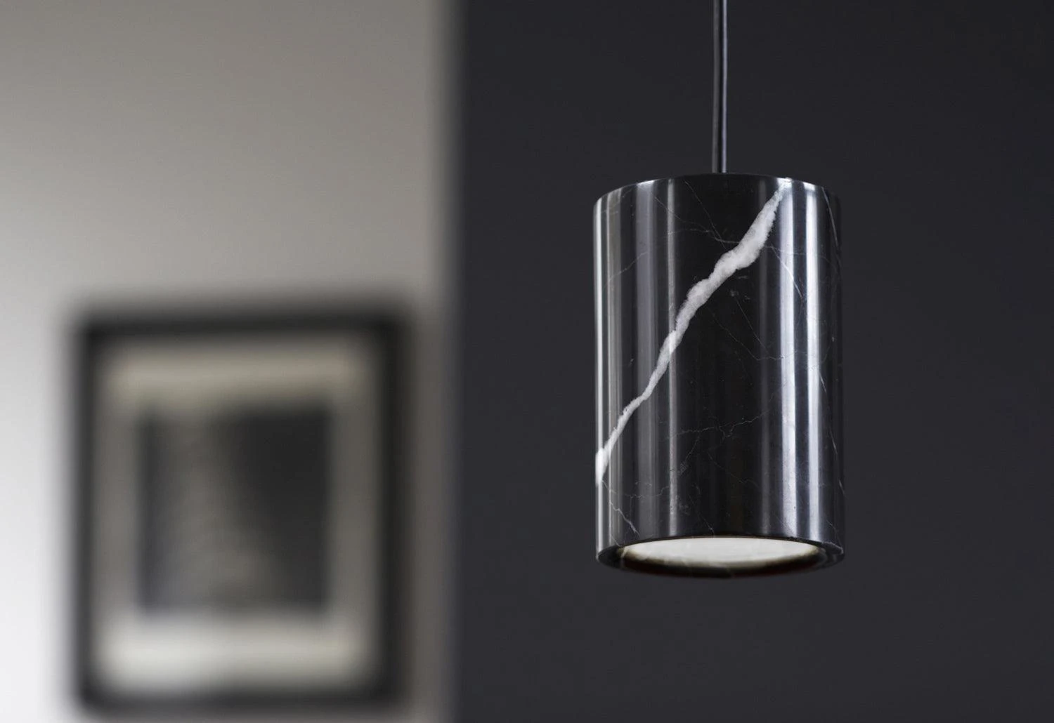 Solid Cylinder marble pendant light by Terence Woodgate for Case.